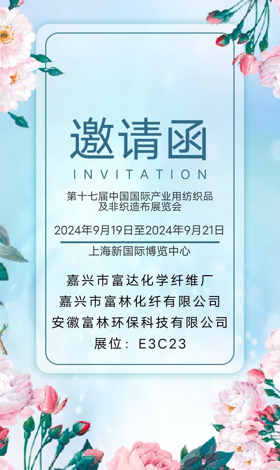 第17回中国国際産業用繊維・不織布展示会 時期: 2024年9月19日~21日 場所:上海新国際博覧中心(龍陽路2345号) 嘉興布達化学繊...