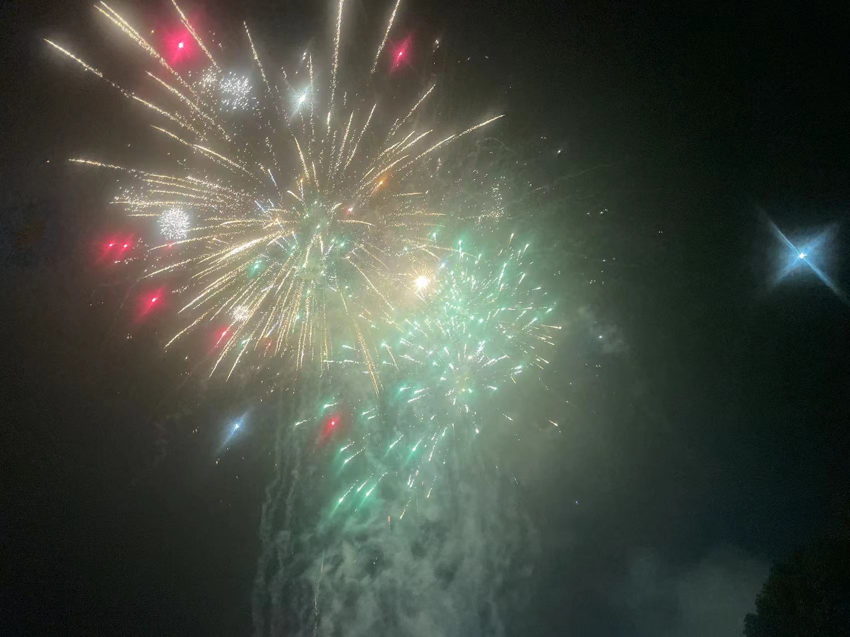 工場内外はお祭りの雰囲気に包まれ、光と色の情景が新年の暖かさを感じさせます。夜空に咲く花火のような色とりどりの光が工場エリア全体を華やかに彩ります。