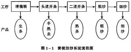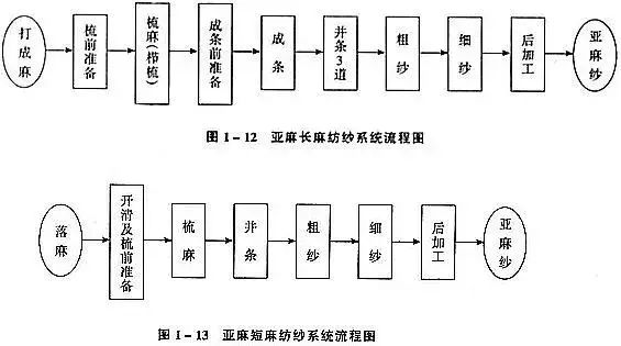 リネン紡績の原料は麻に叩かれ、亜麻長麻紡績システムによって加工されます。その紡績プロセスは図 1-12 に示されており、長麻紡績のロービングを調理した後、細かく加工します。長麻紡績の落ち麻と戻り麻が短麻紡績システムに入り、その過程を下図に示します。