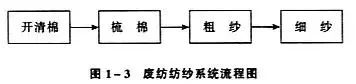 廃紡績システムは安価な粗綿糸を加工するために使用され、そのプロセスは下図に示されています。